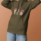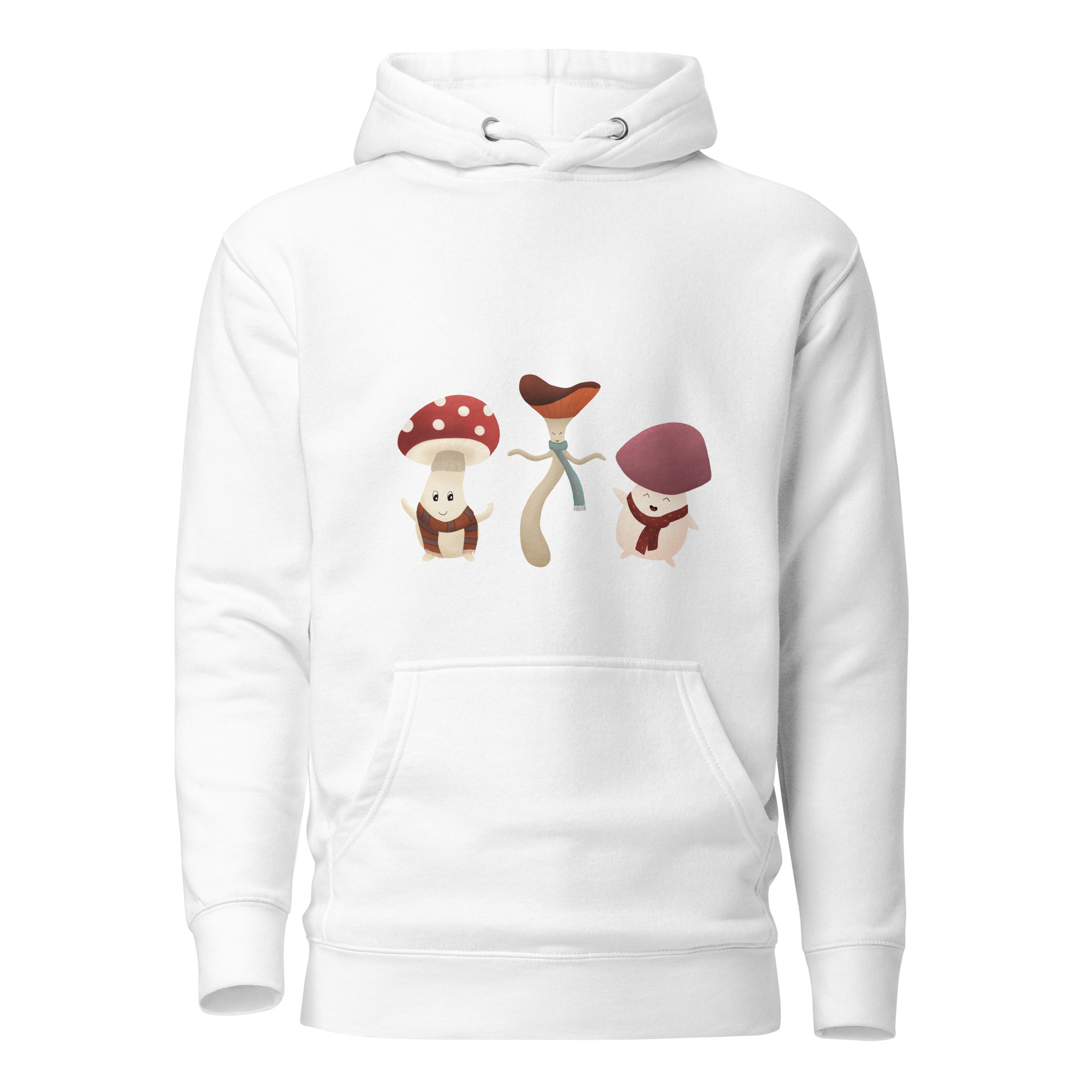 Soft and cozy hoodie featuring three whimsical mushrooms. It is perfect for chilly days, forest walks, or curling up with a warm drink.